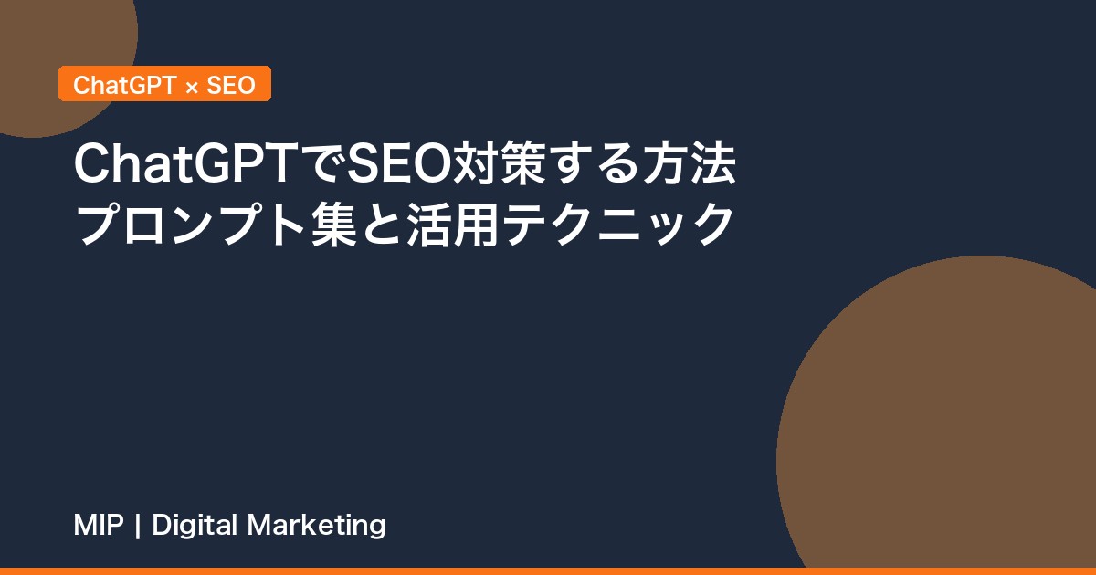 株式会社MIPのマーケティング専門チームです。デジタルマーケティング業界で5年以上の実務経験を持つ専門家が、実践的で価値のある情報をお届けしています。SEO、広告運用、コンテンツマーケティングの分野で数多くの企業様の成果向上をサポートし、その知見を記事として発信しています。